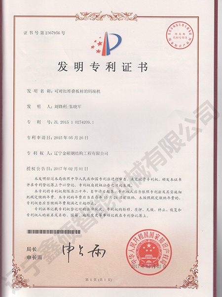 Invention patent of folding plate stacker